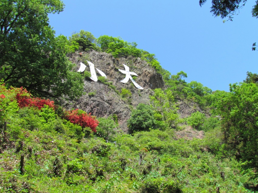 7:50春日部発に乗り富田駅に9:31着く。装備を整えてストックは「ガマ岩」まで使用せず登ることに。9:40~大小山入口まで車道を30分歩く。車道から見える大小山頂上の崖に「大小」の大きな文字版にびっくりです。