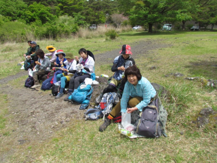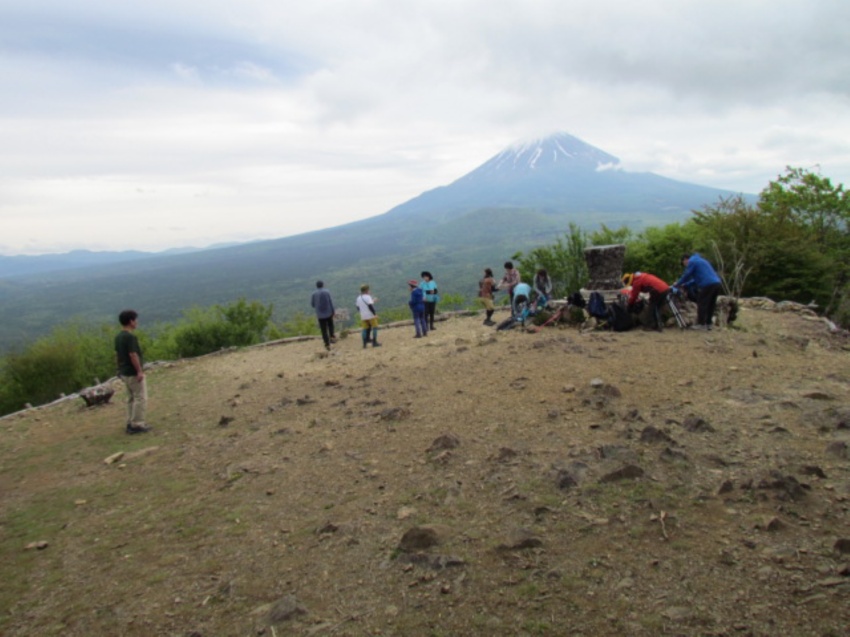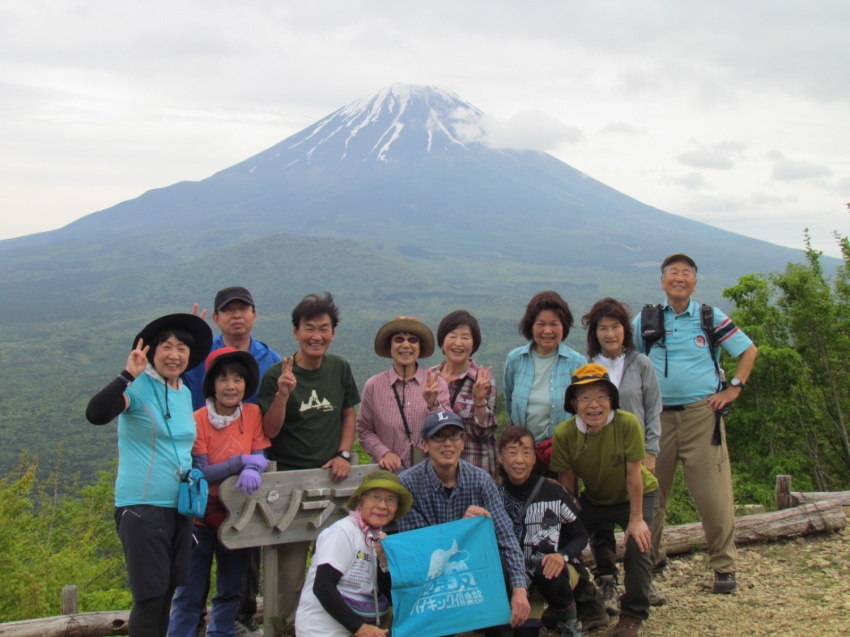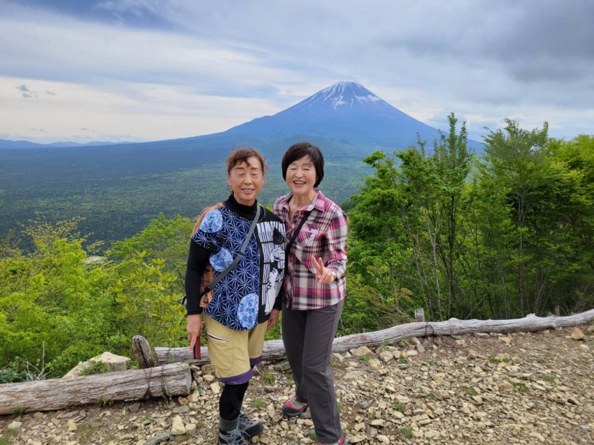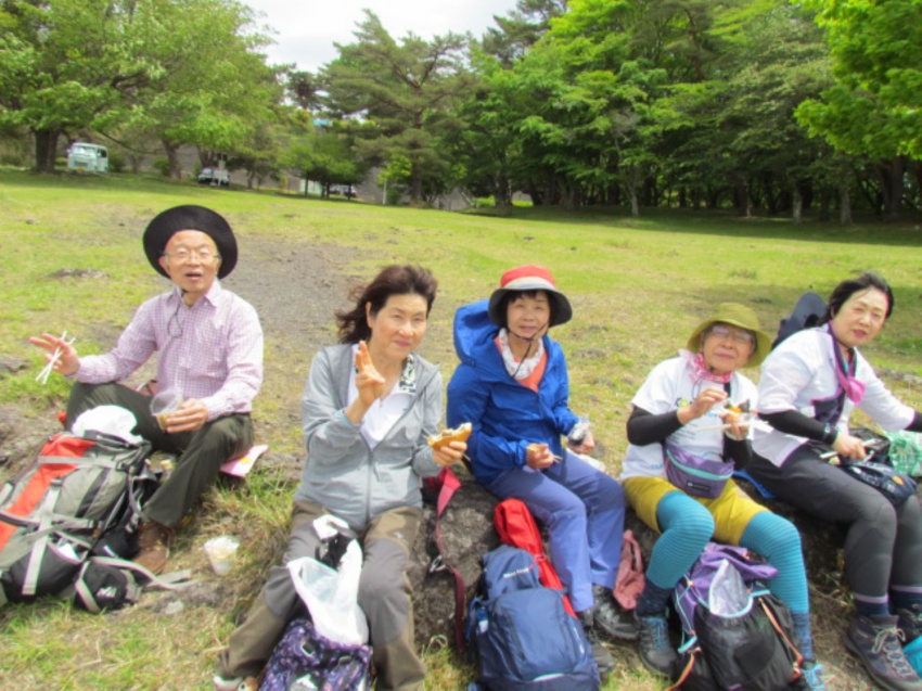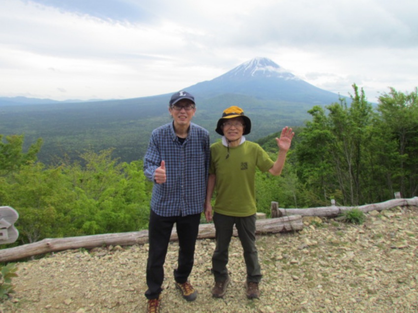コースは歩きやすく、無理をしないでゆっくり歩いて、自然を味わいながらパワーをもらえるようなハイキングにしようと思いました。終始、曇り空でしたが、ほどよい風が心地よく、新緑の中を気持ちよく歩けました。頂上では絶景の富士山🗻✨や眼下に広がる青木ヶ原樹海、富士五湖などを堪能することができました。「もう一度来たい山だねえ!」のメンバーの声も。高い山ばかりがいいとは限らない。低くて短時間で登れる山でも、いい山はたくさんあるとあらためて実感しました。お弁当を食べるには絶好の場所でしたが、時間が早すぎるのと風が強くなってきたので、烏帽子岳の頂上を目指すことにしました。