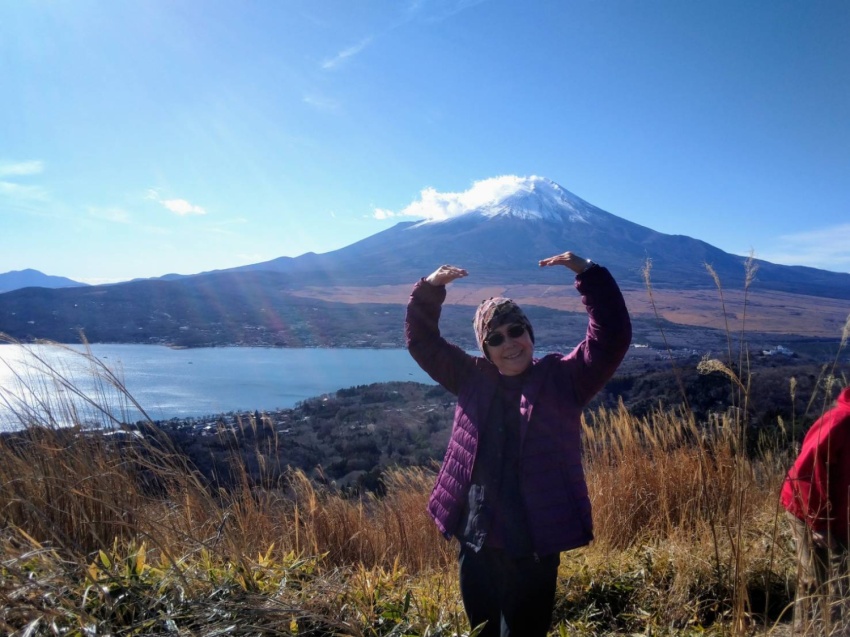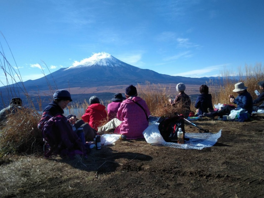 ドカーンと裾野を広げた富士山を目の前に昼食。1年間の疲れがぶっ飛んだ気分。