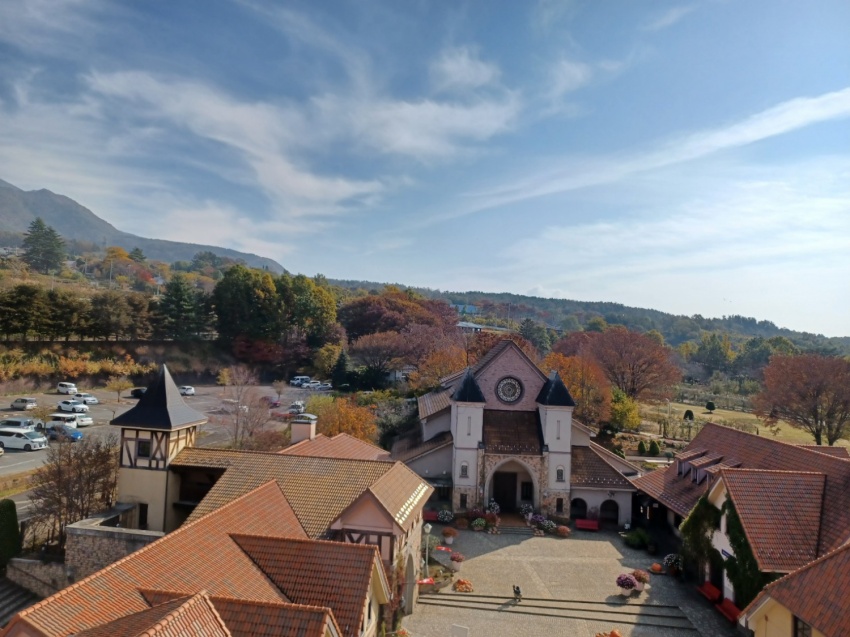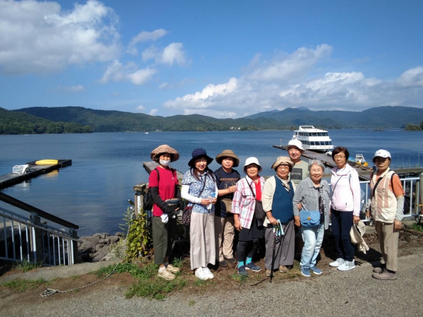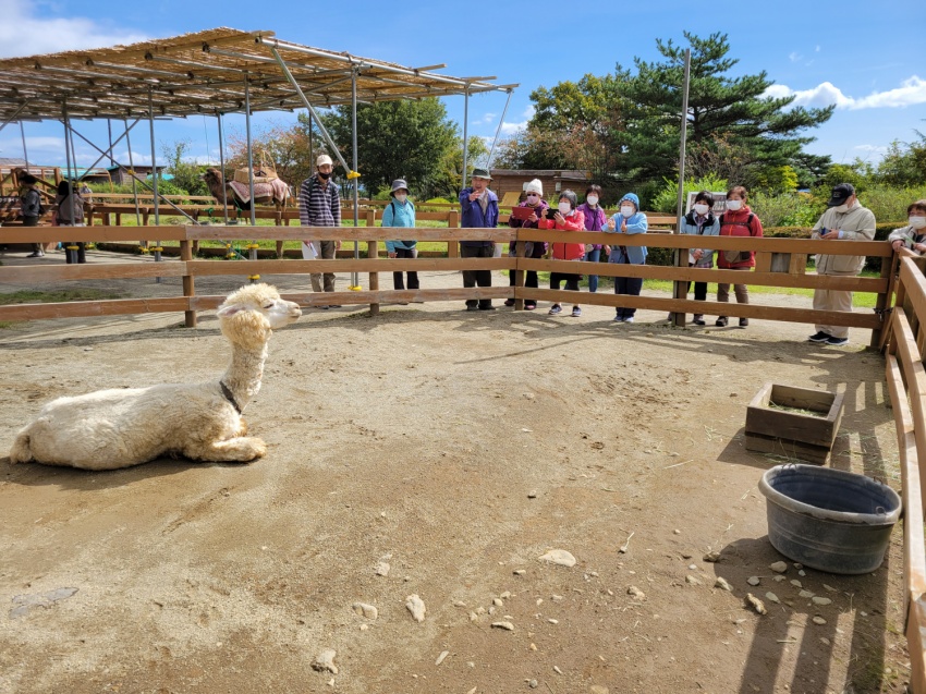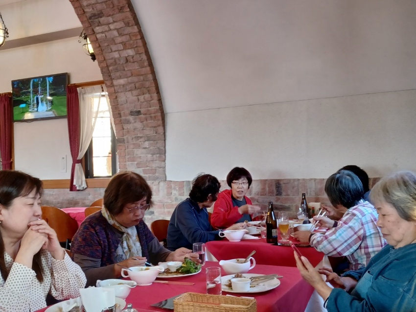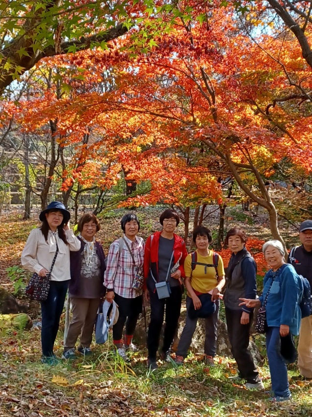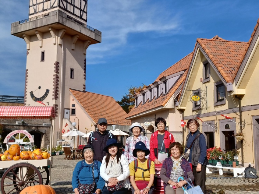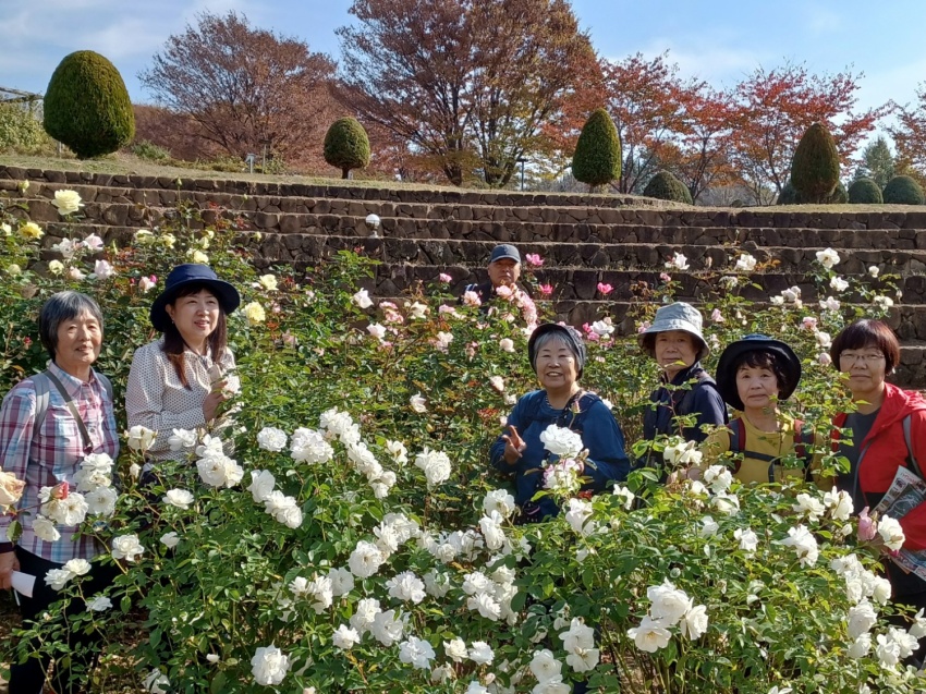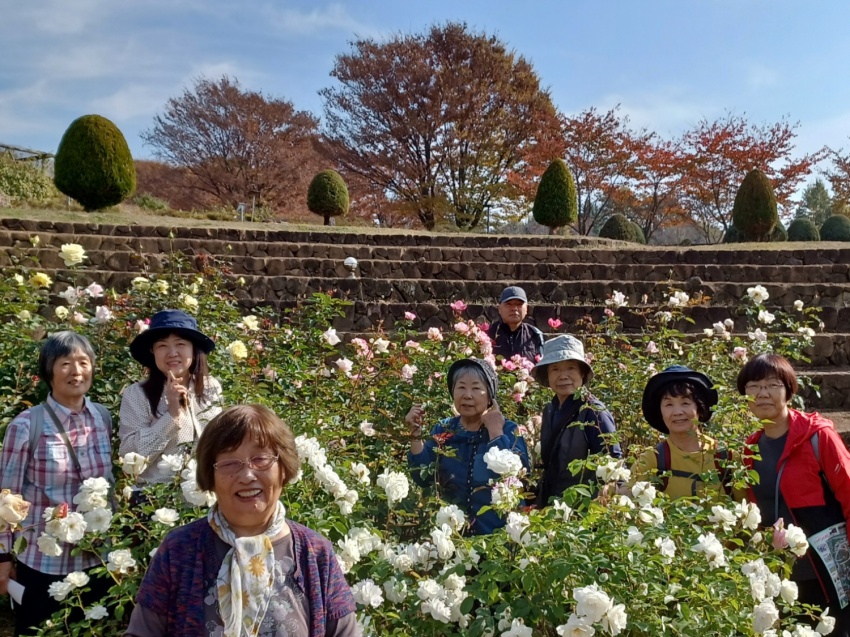 いつも同じに6:00前に参加者21名を乗せて、バスは春日部西口を出発。トイレタイムを取りながら深田久弥記念公園に着いて、石碑の前で全員で写真を撮る。ここで山組と別れ旅組はハイジの村に向かう。ハイジの村は、思っていた以上に狭かった。1974年頃に放映されていたもので懐かしかったが、生まれていなかった人もいて、チョットね…。花回廊のバラは、終わりかけていたが、わずかに残って咲いていた。虹の池では、色とりどりの鯉が歓迎してくれて皆さんしばらく立ち止まっていい笑顔!村の中の林を散策。紅葉が盛りできれい。落葉はふかふか。歩けばかさかさとここちよい音がする。ランチまで時間があるので休憩・雑談で待つ。ランチは、上げ野菜などにカレーをかけて食べる。とてもおいしくて皆さん満足。時間はたっぷりある。お店のパラソルのテーブルでスマホのラインの勉強で賑わっていた。