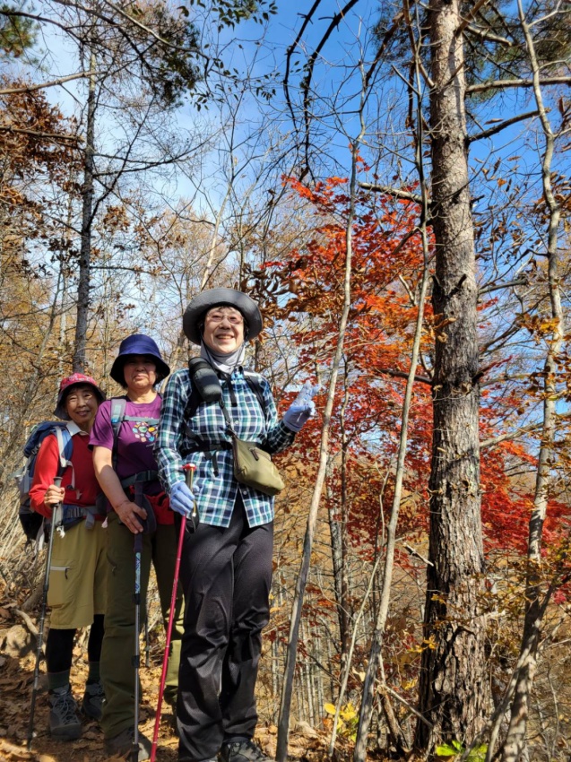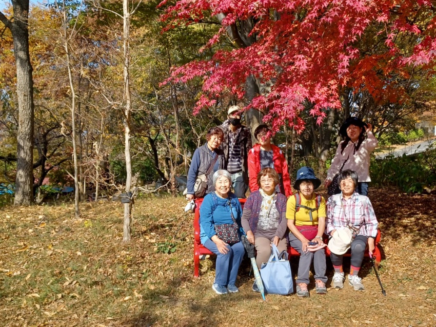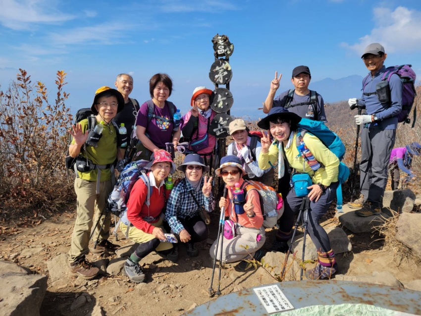 頂上は見晴らしもよくのんびり食事することができました。下りはなだらかな長い下り。途中真っ赤なカエデの紅葉🍁がきれいでした。一日落ち葉を🍂踏みしめ好天のなか秋山を楽しめました。皆さんありがとうございました。忙しい仕事のなかバスのなかでもいろいろ考えてくださりリーダーさんお世話になりました。楽しい😃🎶一日でした。