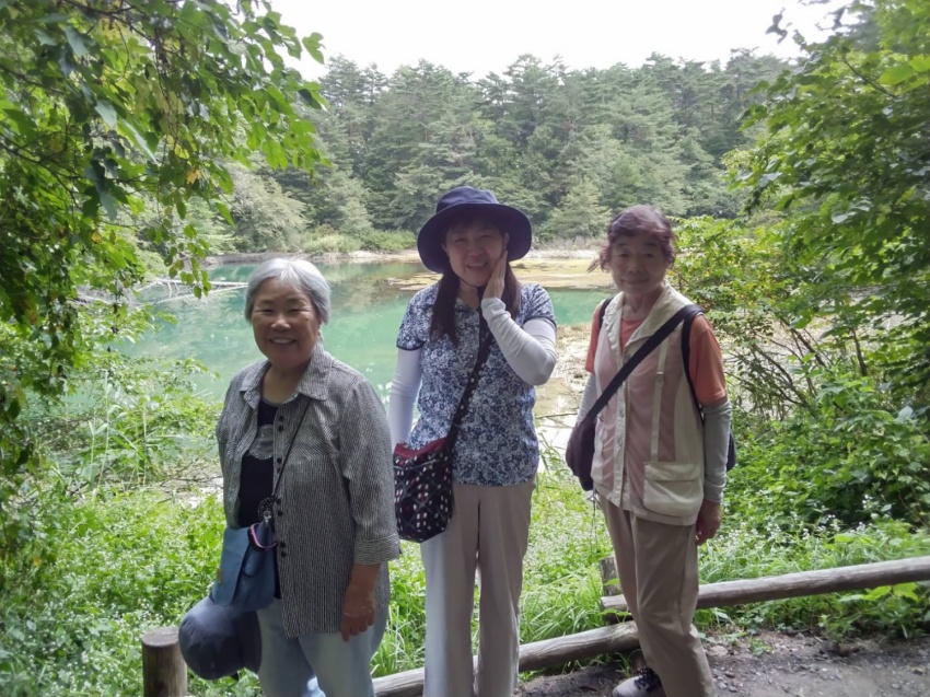 山組と長池清水公園で別れて、私たち旅組は、忍野八海に向かいましたが、バスの運転手さんの勘違いで、富士山が見えない方に、バスが走ってしまい1時間のロスが有りました。戻ってきたら、もうお昼お腹も゙空いていたので、お昼を食べて、お釜池、銚子池など見に行きました。どこを見ても中国の人々動くのも大変でした。