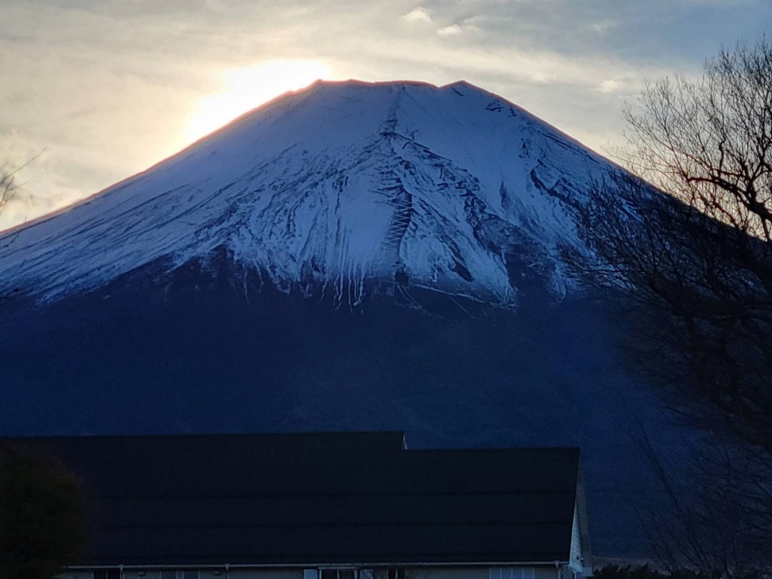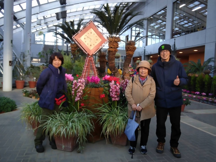 蘭やシクラメンの温室施設で、ダイヤモンド富士を待ちながらの1…2…3杯。