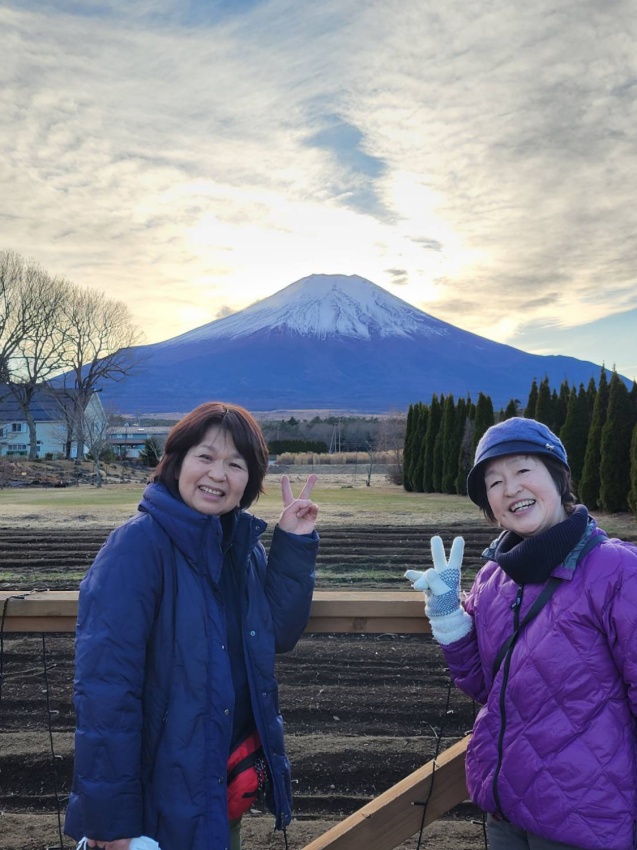 その後も底抜池色々な魚が、きれいな水で泳いてました‥山組の人たちと合流して最後の花の都公園で、ダイヤモンド富士を見ようと外に出ましたが、ちょっと遅かったかな?でもとても綺麗な富士山が見えて満足でした。