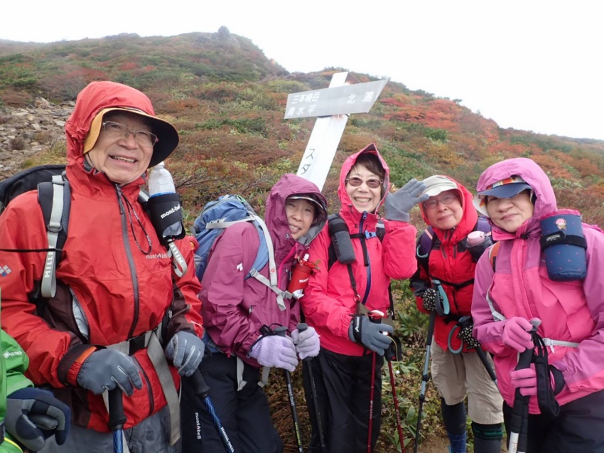 それから10分後、「朝日岳で4人が遭難した」と、スマホで知った市川さん、松島さんが。さらに「低体温症で4人の方が亡くなった」と。朝日岳は三本槍ヶ岳の隣の山。危険は隣り合わせと言うが‥。下山して食事を終えると大粒の雨。もし途中で下山していなければ、と、思うと‥(怖っ)。この時期の山は、秋でも一気に冬山に変身するのだ。装備に経験と判断力。改めて教えられた山であった。