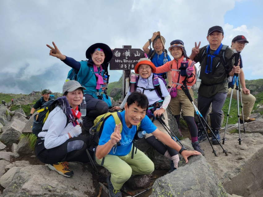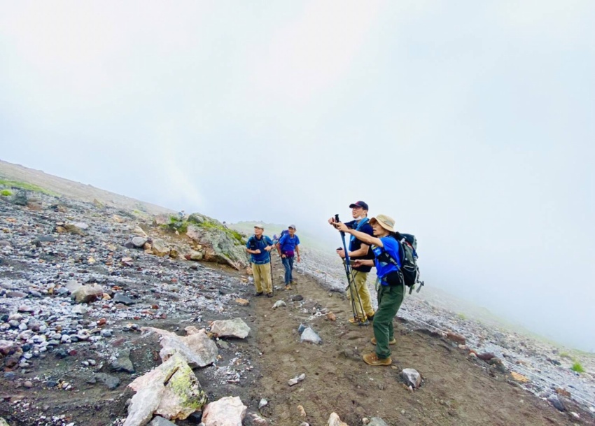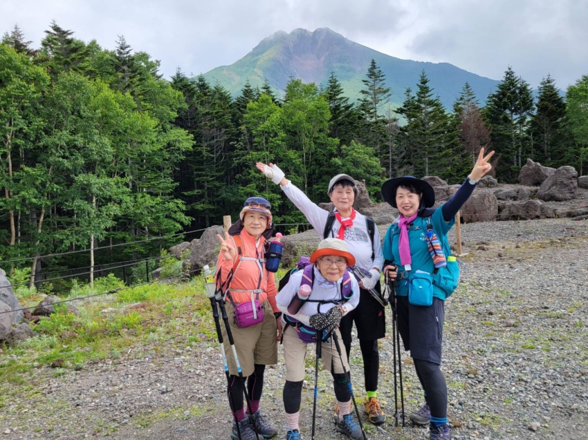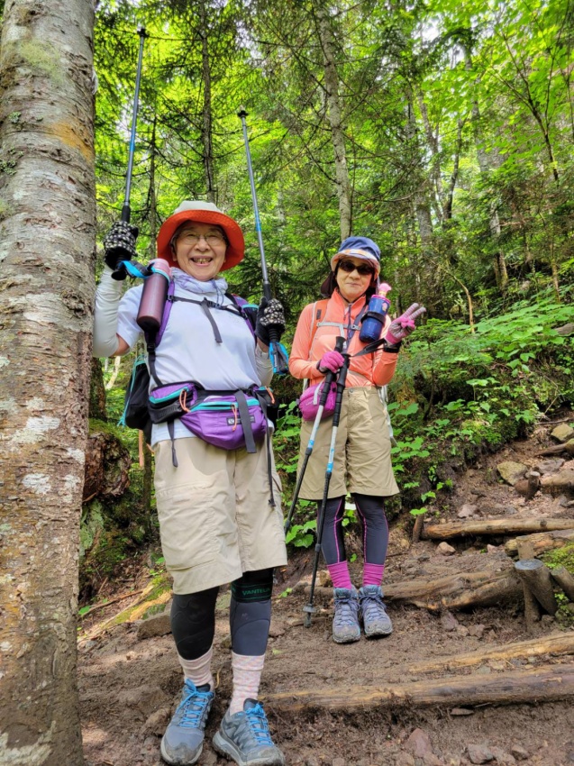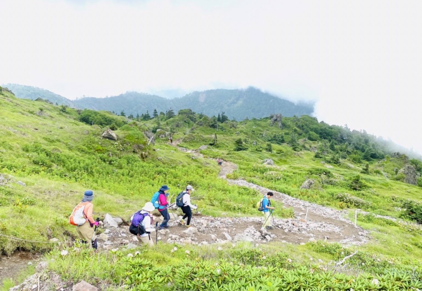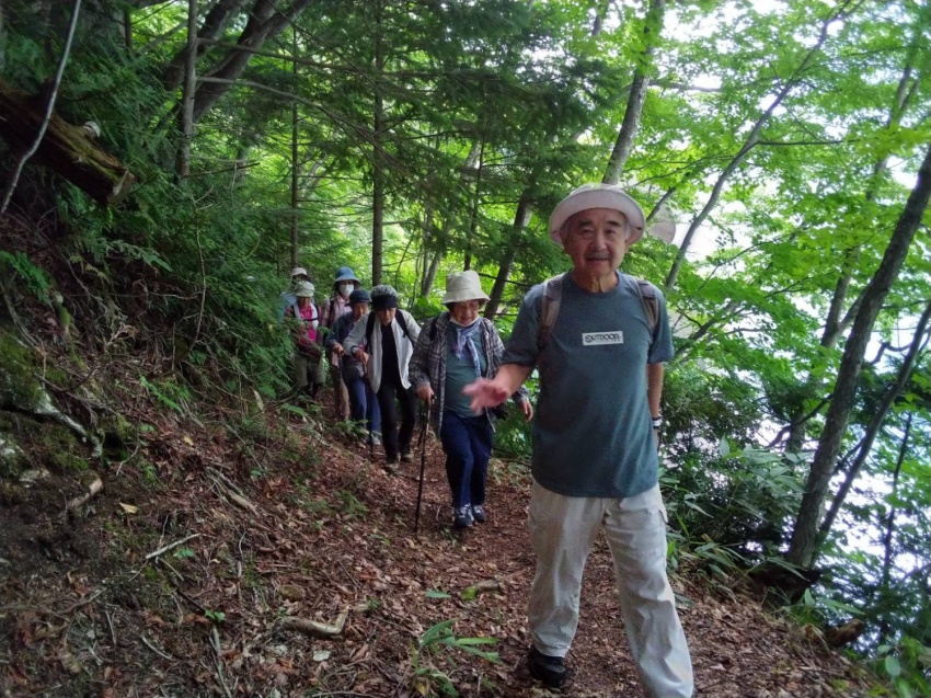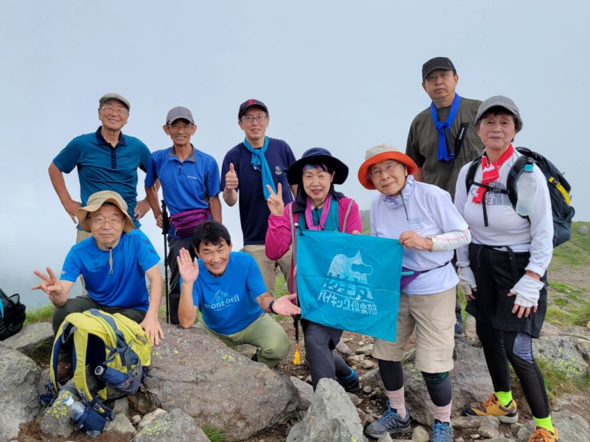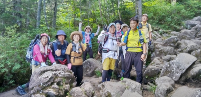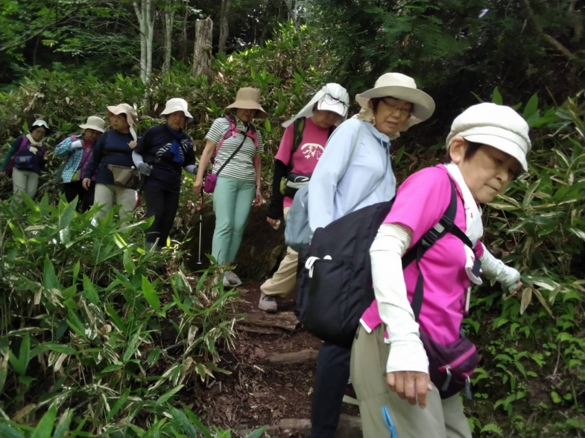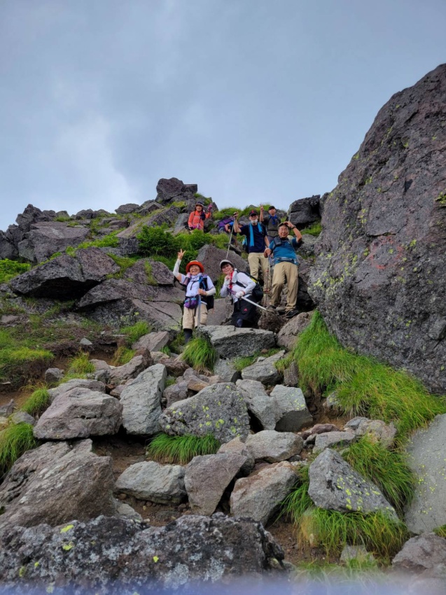 リーダーを務めるため7月に下見で登りましたが、正直なところ日頃の鍛錬ができていない私には、石ころだらけの登山道をひたすら上るのが苦しくて苦しくて疲れ果て、ヘロヘロになってなんとか山頂に到着しました。そんな状況のため、これは当日は遊友の山組の女性陣からも途中で脱落者が出るのではとか、むしろ自分が脱落者になってしまうのではとの心配を真剣にしておりました。